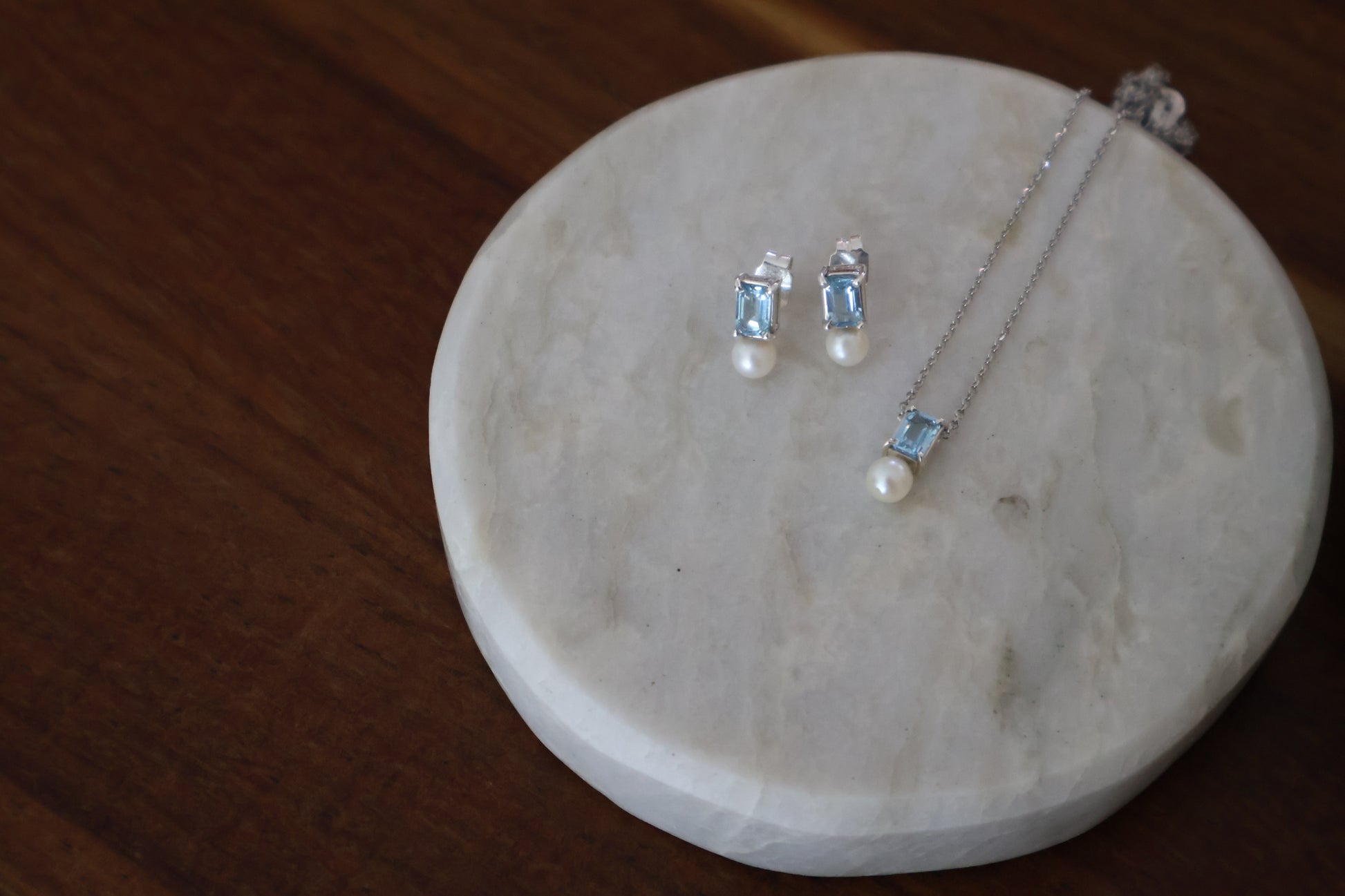 Aquamarine + pearl studs
